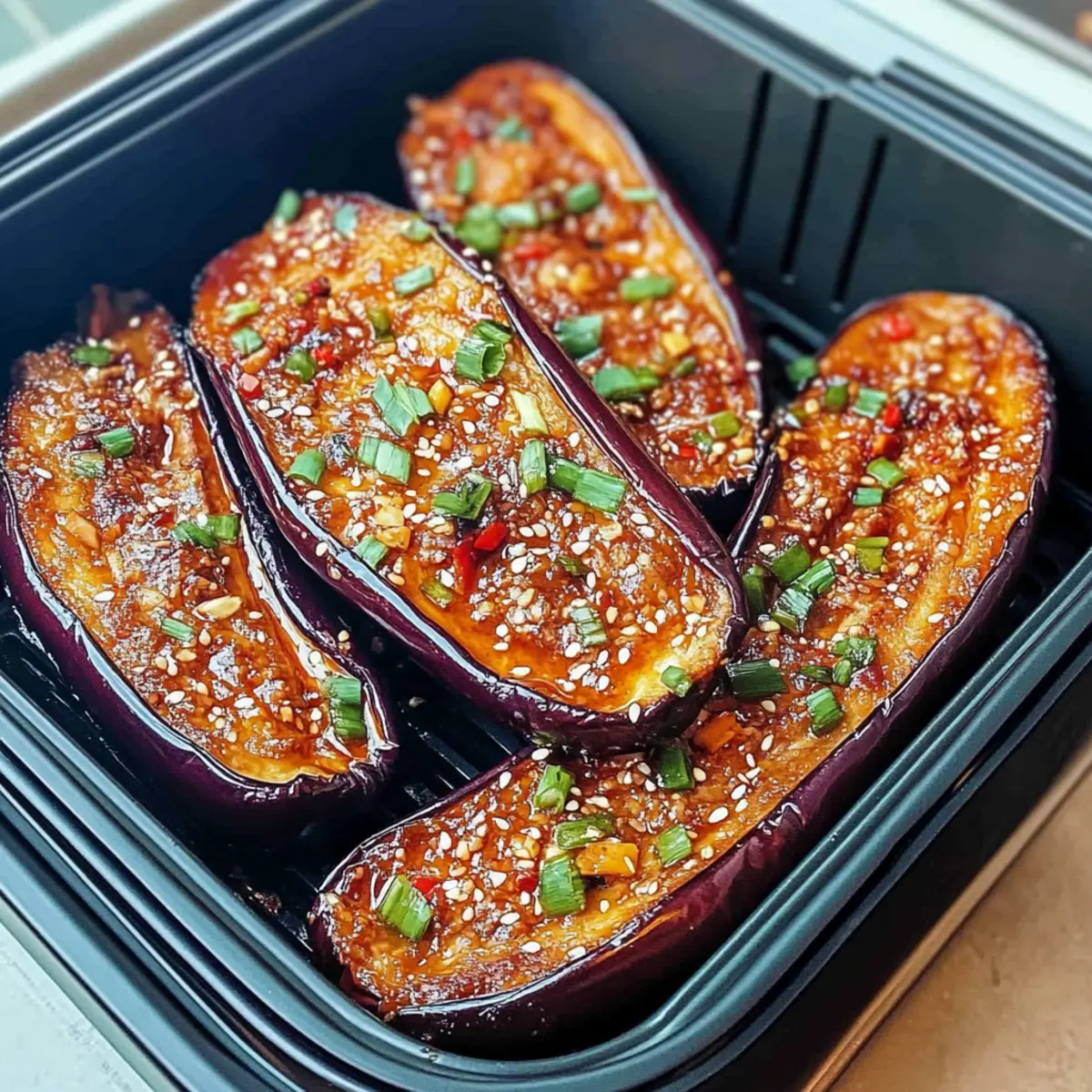 Once the cooking time is complete, remove the eggplants from the air fryer, allowing their rich aromas to fill your kitchen. Garnish with extra sliced green onions and a sprinkle of sesame seeds for added crunch and visual appeal. Serve your delightful Air Fryer Chinese Eggplant warm with steamed rice or noodles, making each bite a cherished moment.