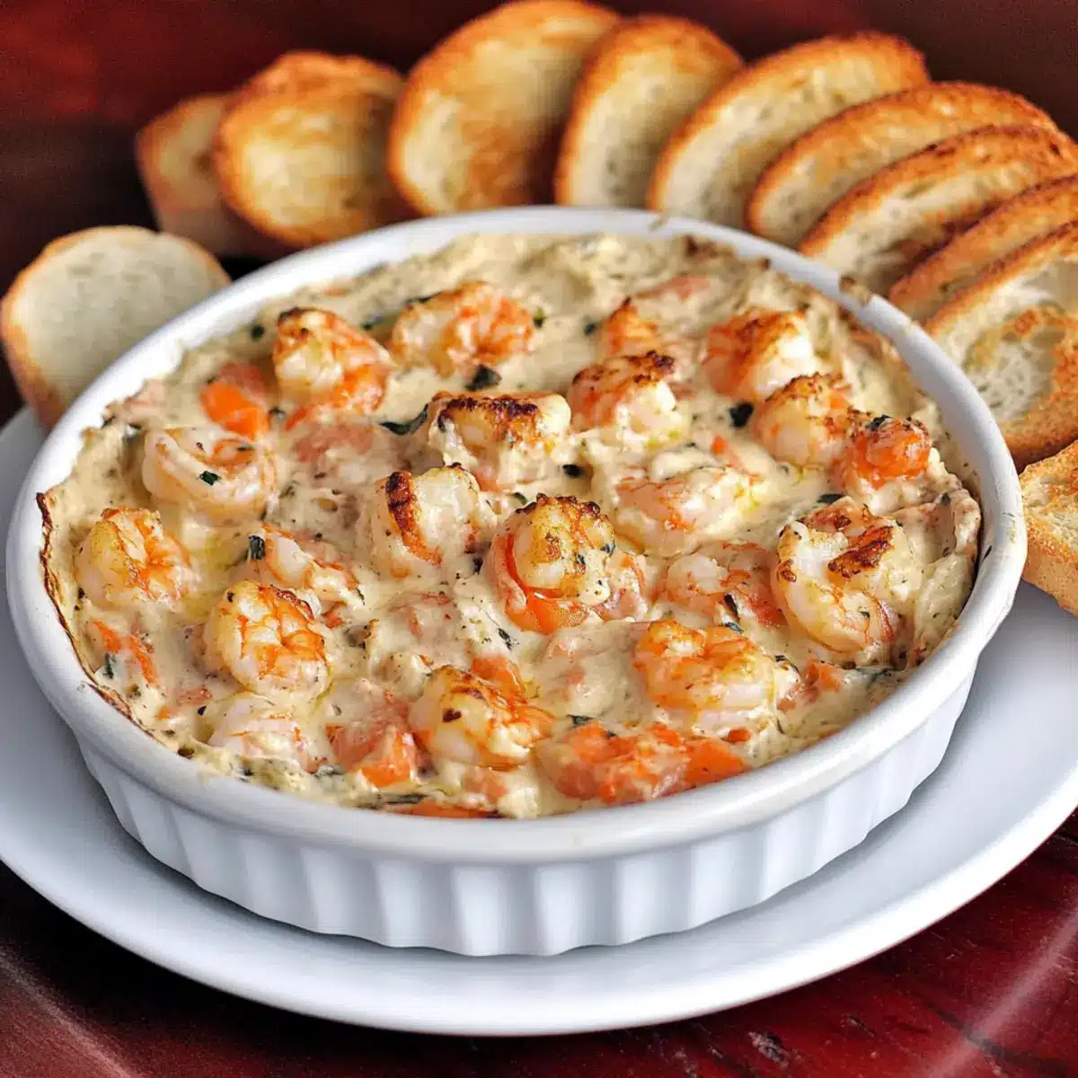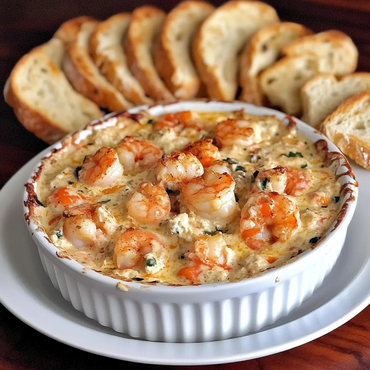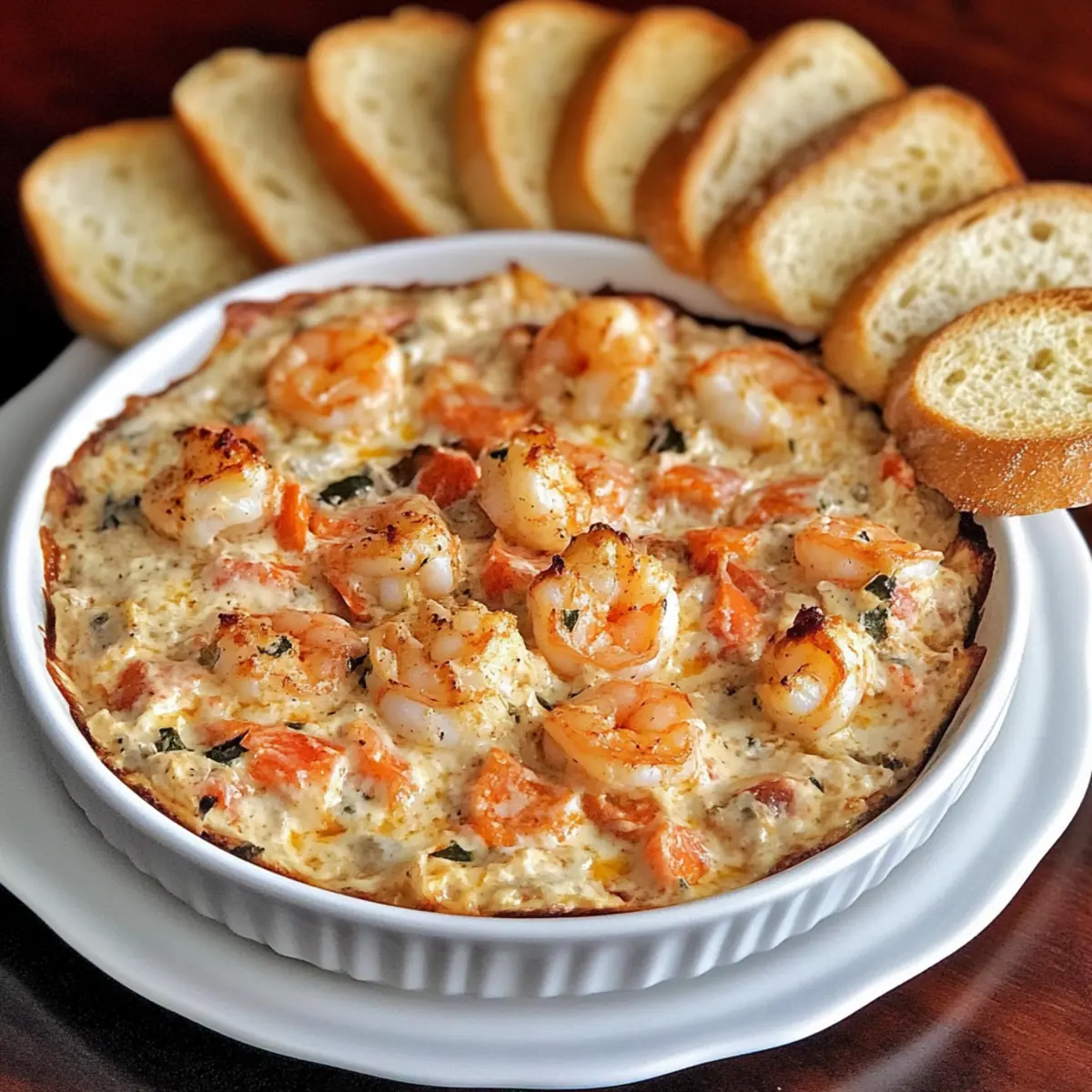 Once baked, remove the dip from the oven and allow it to cool slightly. Serve warm with crispy toasted baguette slices, perfect for dipping into your delightful Cajun Shrimp Dip. The flavors will be rich and bold, making this a standout appetizer at any gathering.
