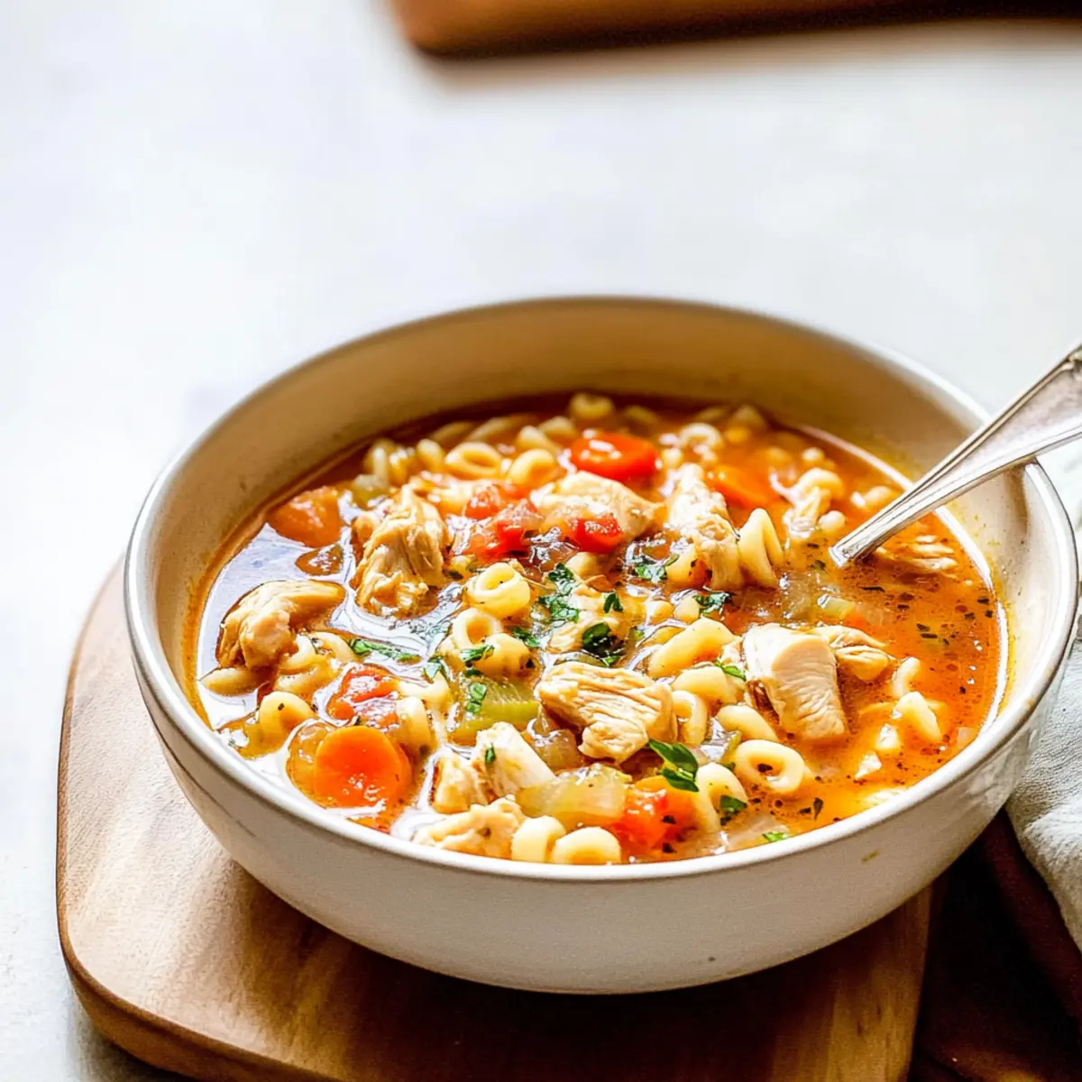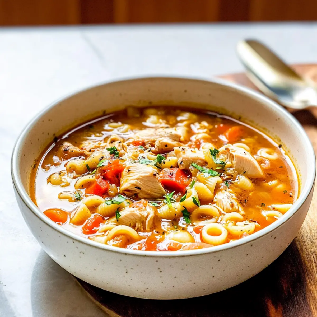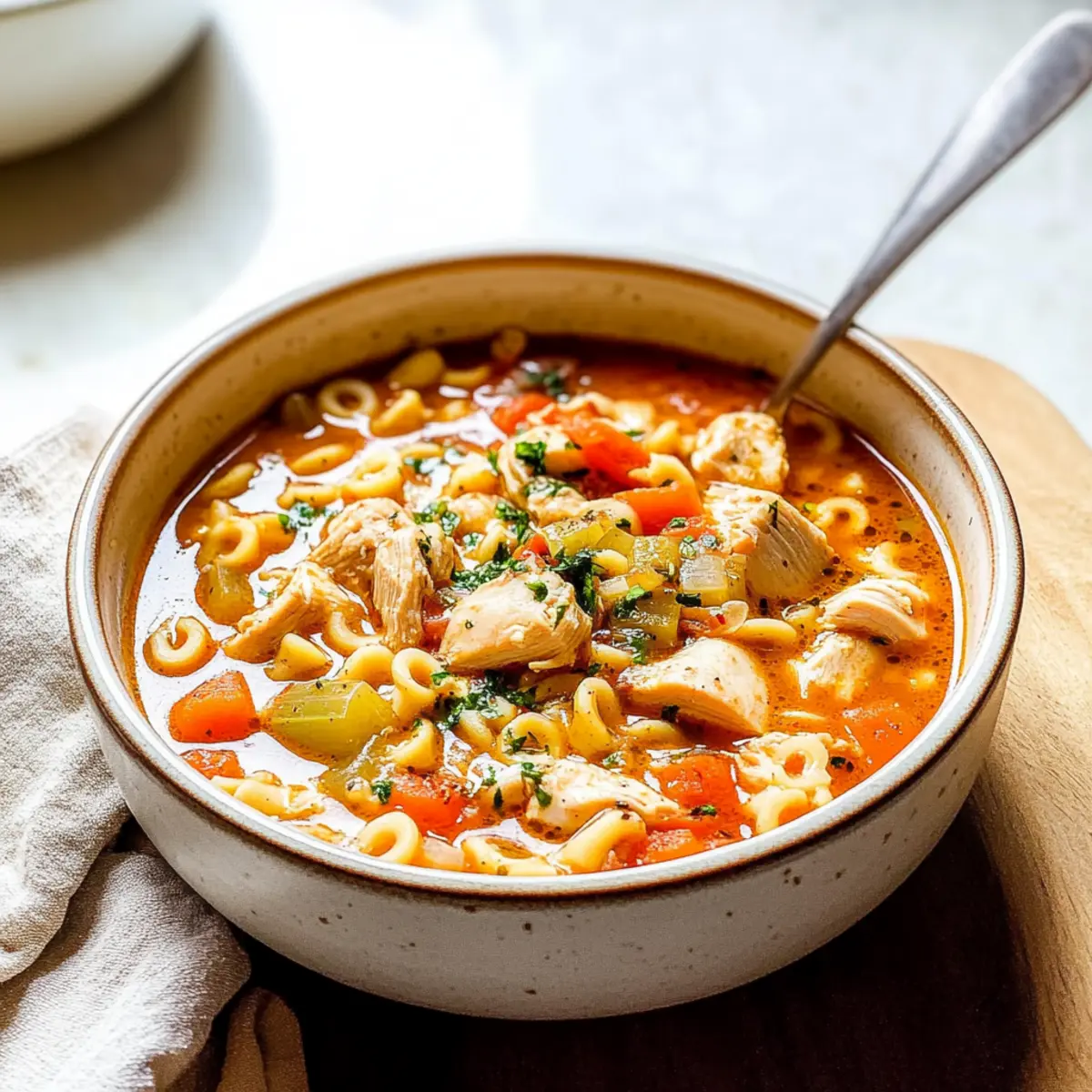 Flavorful twist: Packed with tender chicken, fresh vegetables, and ditalini pasta, every spoonful bursts with taste.