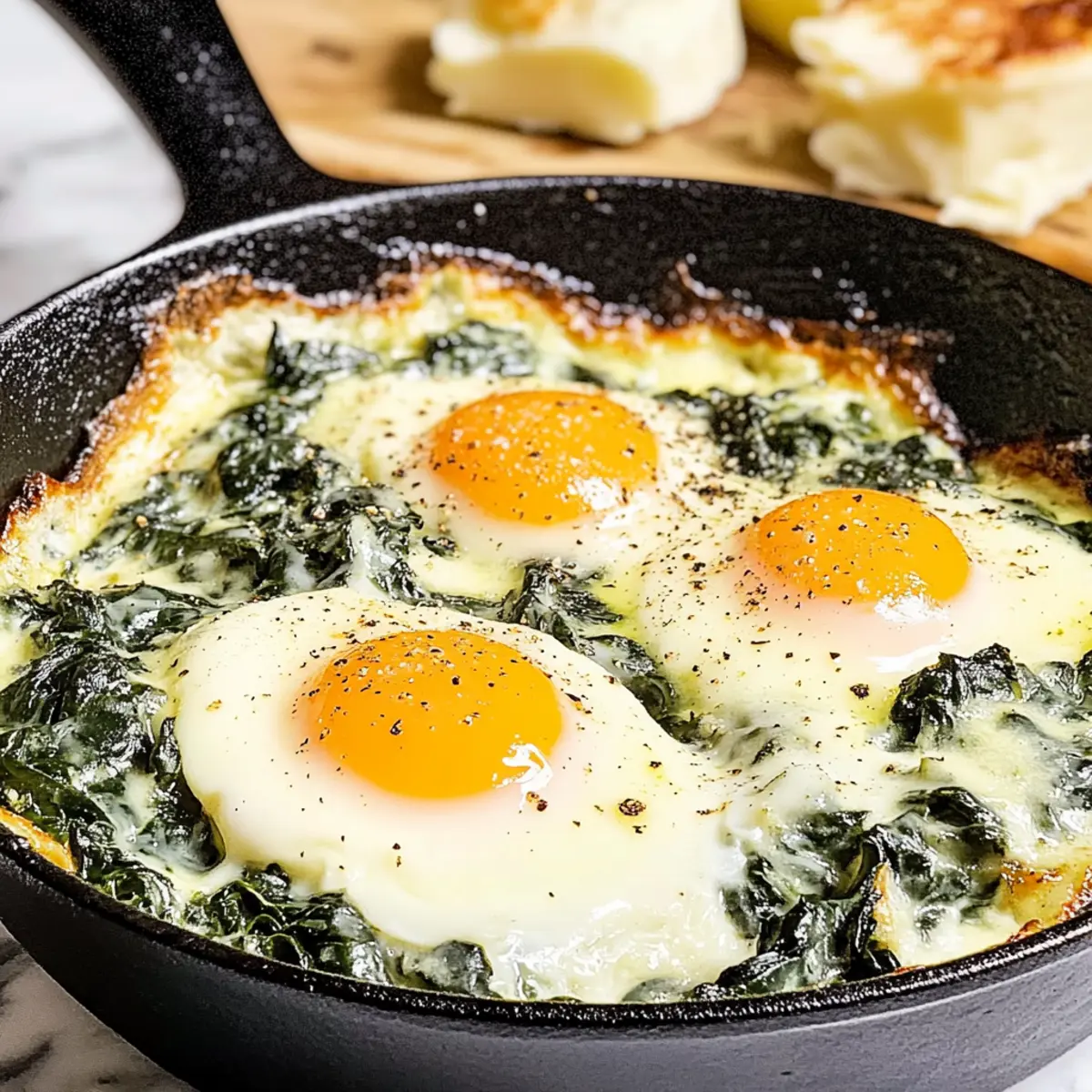 Comforting Baked Eggs Recipe with Creamy Spinach Delight