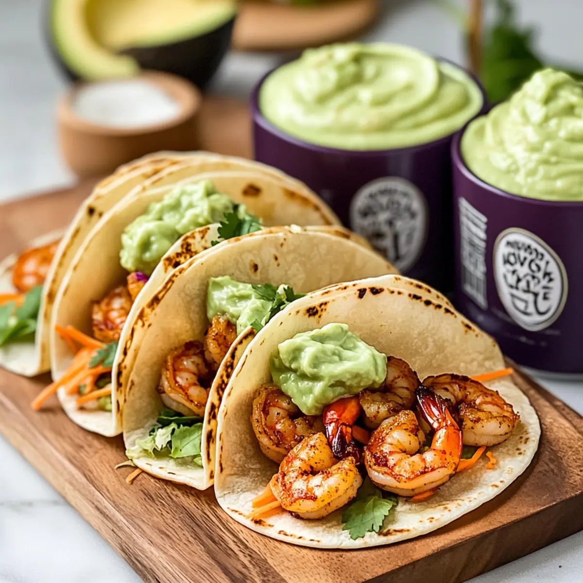 Delicious Spicy Shrimp Tacos with Creamy Avocado Crema