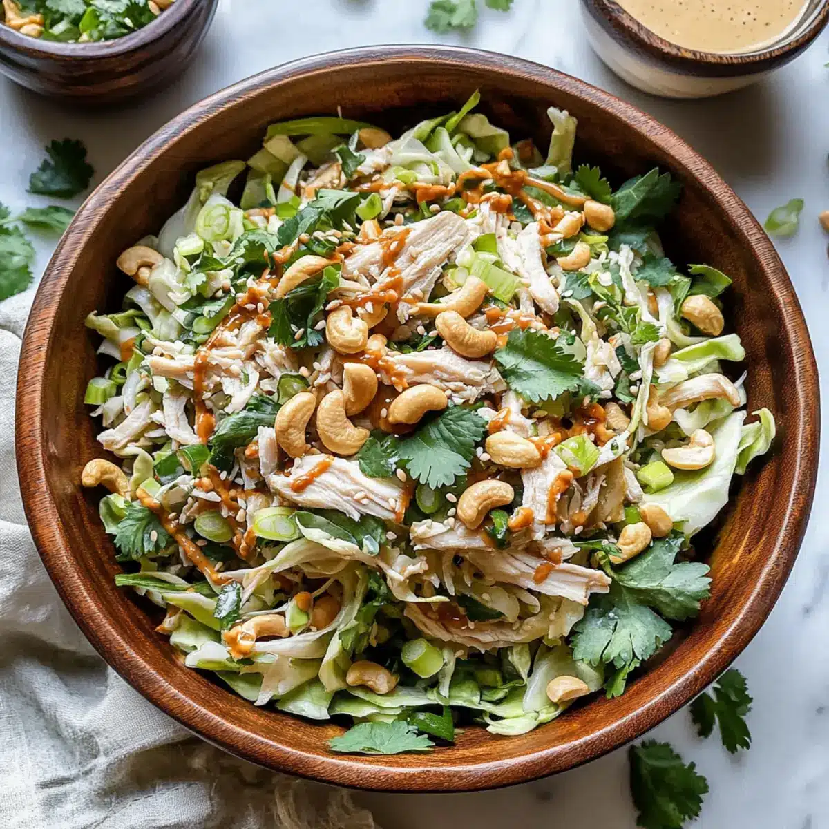 Preparing the Chicken Cashew Crunch Salad ahead of time is a fantastic way to simplify your meal planning and save precious weeknight minutes! You can make the dressing up to 5 days in advance; simply store it in an airtight container in the refrigerator. For the salad itself, chop the napa cabbage, shred the chicken, and mix the carrots and green onions, then store these dry ingredients together in an airtight container for up to 24 hours. When you’re ready to serve, just toss the salad with the dressing and sprinkle with cashews and cilantro for that satisfying crunch. This ensures everything stays fresh and maintains its delightful texture, creating a quick, nutritious meal that feels just as vibrant as the day it was made!