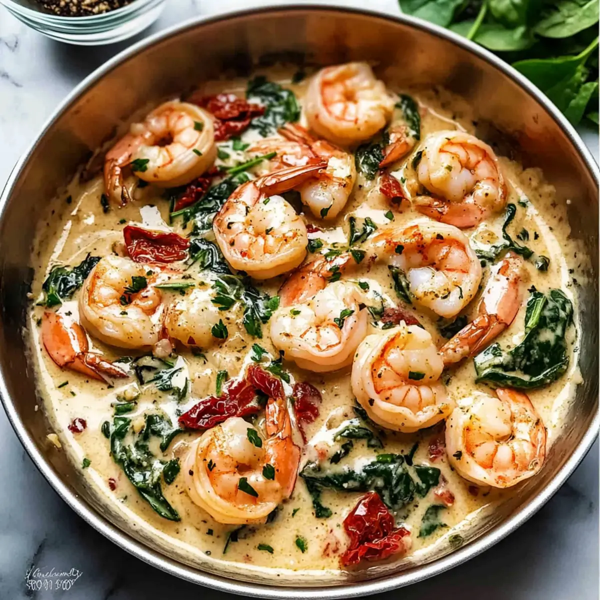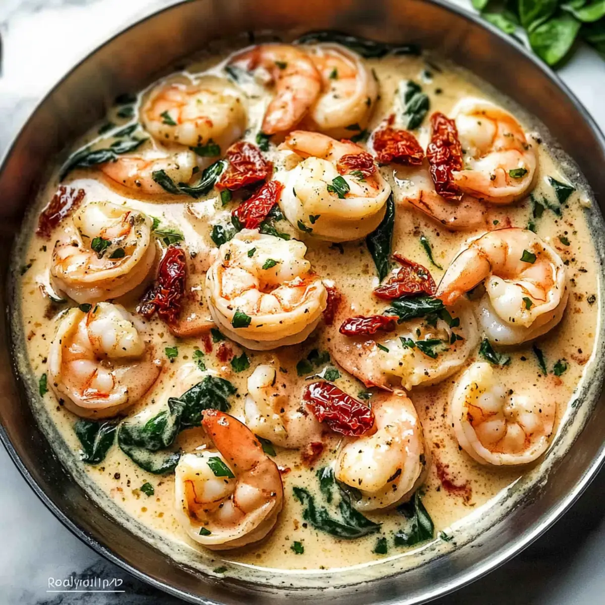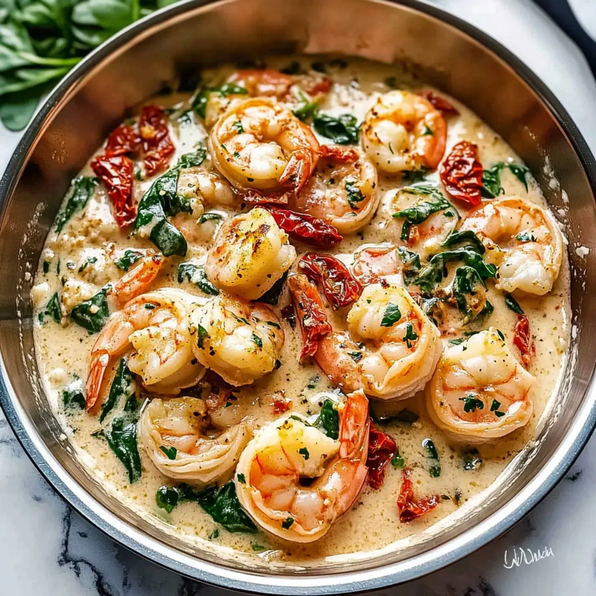 These Creamy Garlic Butter Tuscan Shrimp are perfect for meal prep! You can prepare the sauce components up to 24 hours in advance, including sautéing the garlic, onions, and sun-dried tomatoes, which can be refrigerated in an airtight container. The shrimp can also be cleaned and seasoned ahead of time and stored separately in the fridge. When you’re ready to serve, simply reheat the sauce in a skillet over medium heat, add the shrimp, and finish with half and half or cream, spinach, and Parmesan for that creamy texture. This way, you can enjoy an elegant meal while saving precious time on busy weeknights!