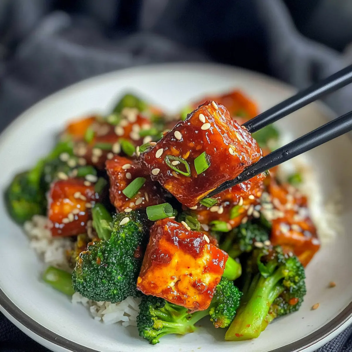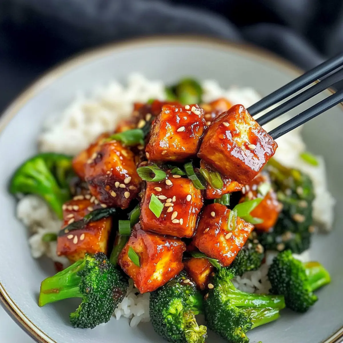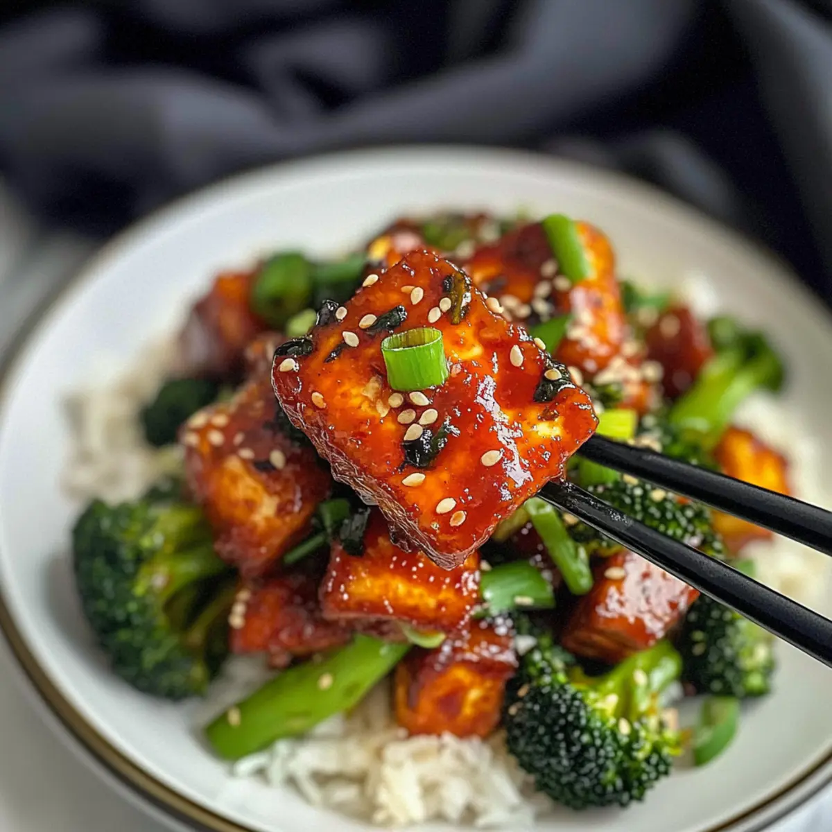 To plate your Crispy Gochujang Tofu, serve it over a bed of fluffy white rice or your choice of grain. Garnish with the green tops of the green onions, a sprinkle of toasted sesame seeds, and, if desired, a pinch of crushed red pepper flakes for extra heat. This colorful dish is now ready to delight your taste buds!