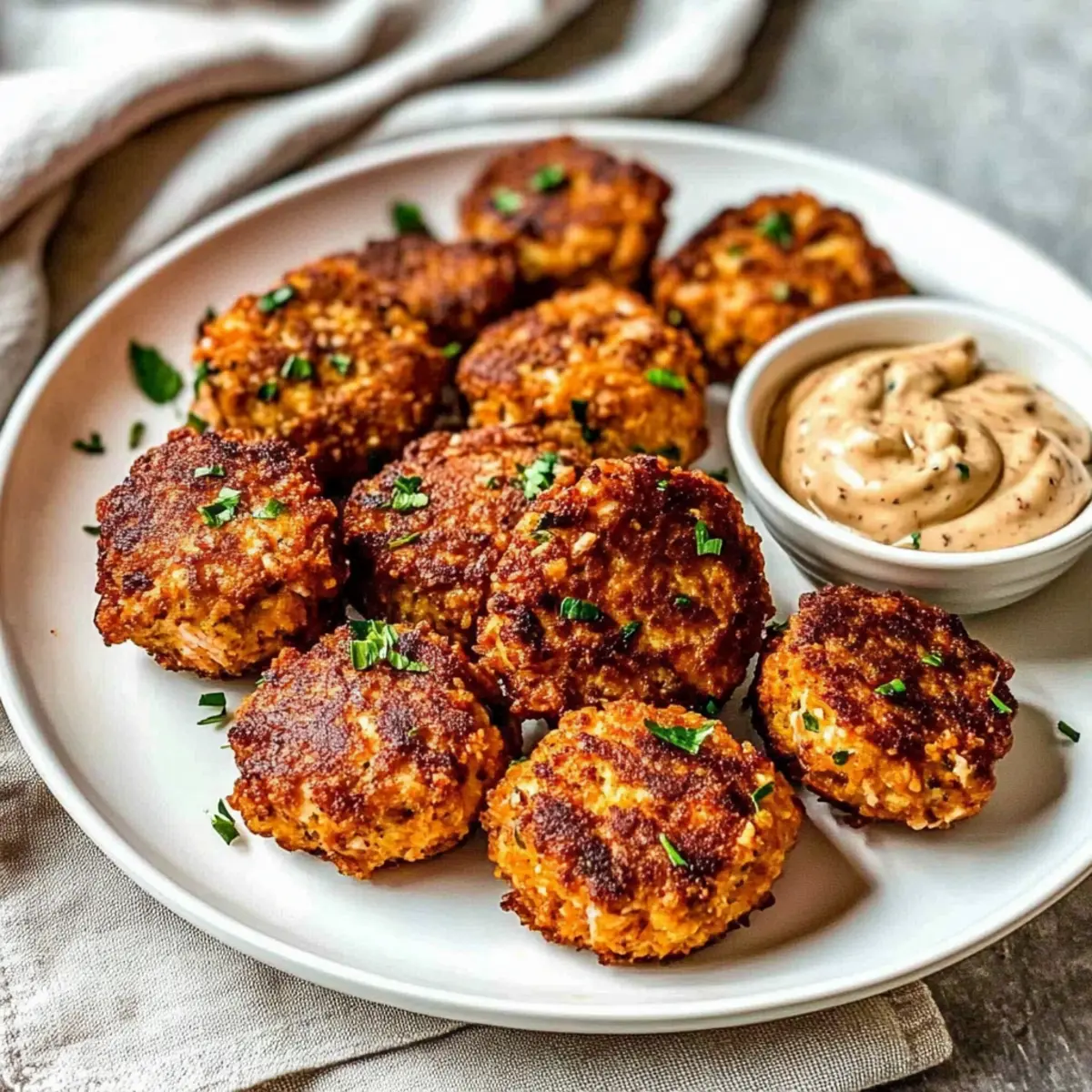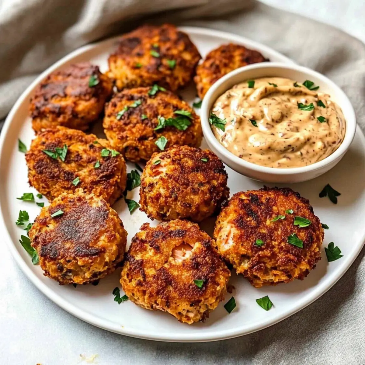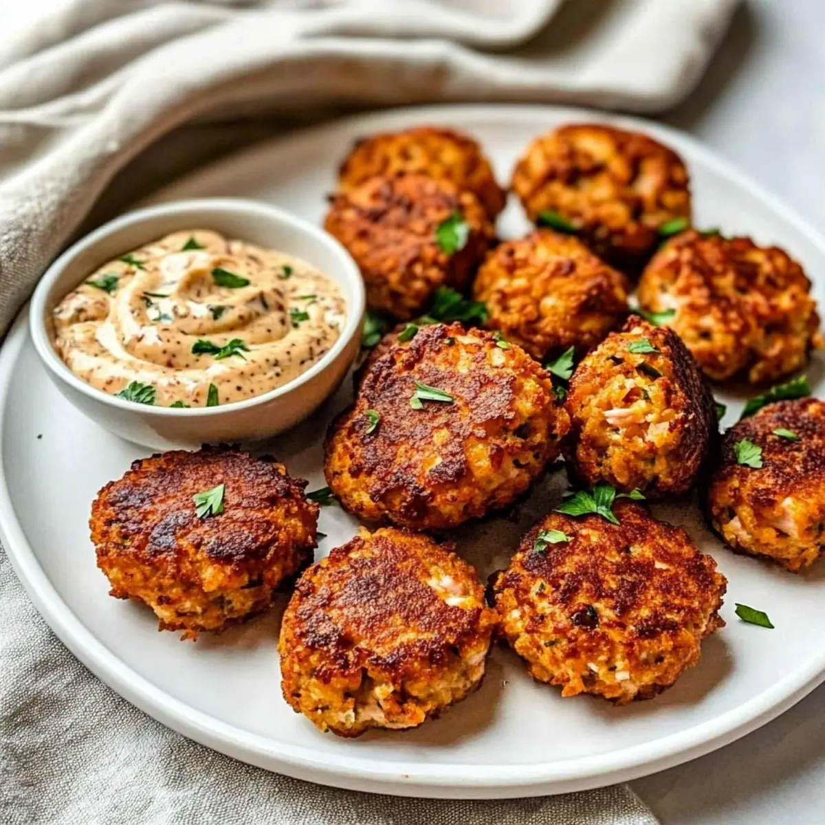 Once the crispy pan fried salmon croquettes are all cooked, arrange them on a serving platter. Garnish with fresh parsley and serve them hot alongside your prepared remoulade sauce for dipping. These delightful bites are perfect as appetizers or even as a main course, bringing joy to any meal.