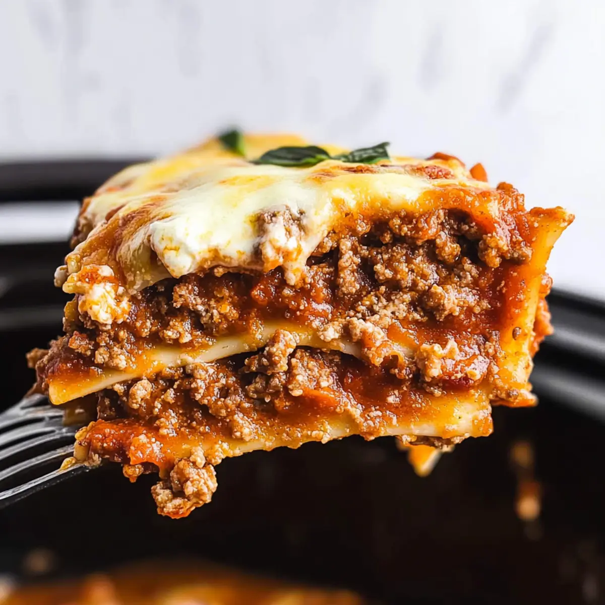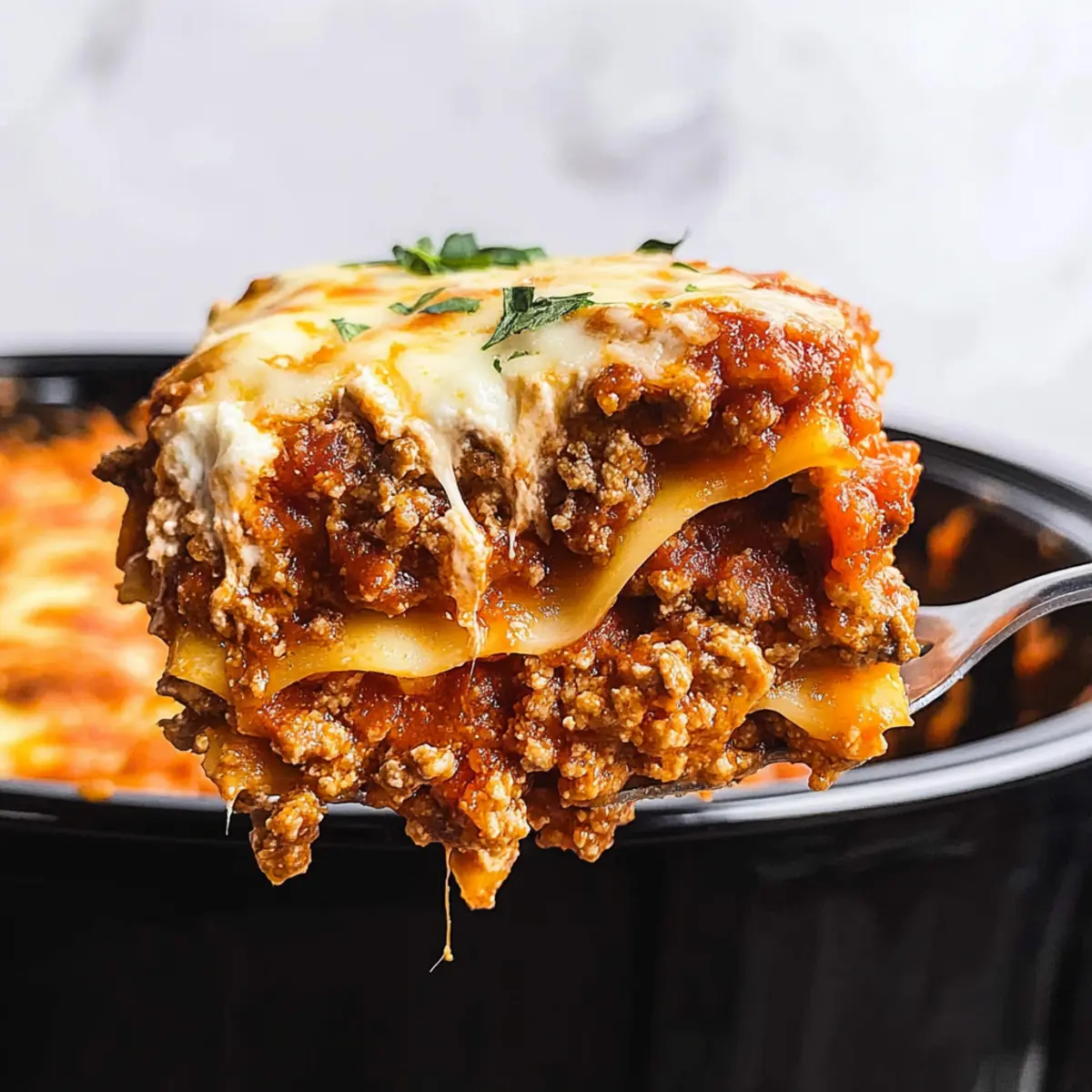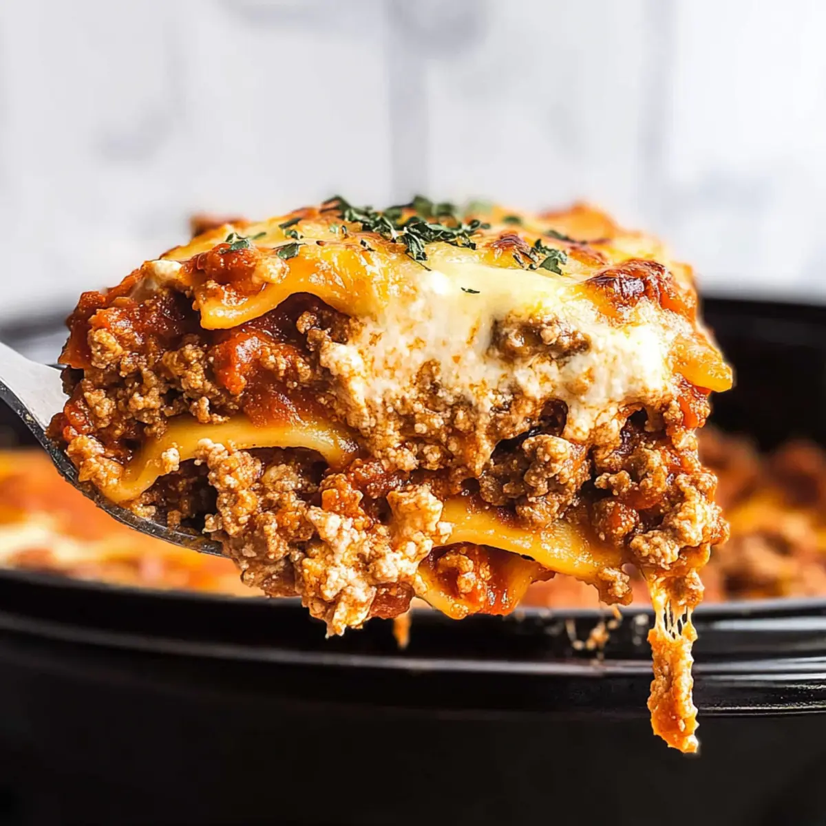 Excellent question! To avoid greasiness, drain excess fat from the cooked ground beef thoroughly before mixing it with your marinara sauce. This step is essential for maintaining the integrity and flavor of your Crockpot Lasagna!