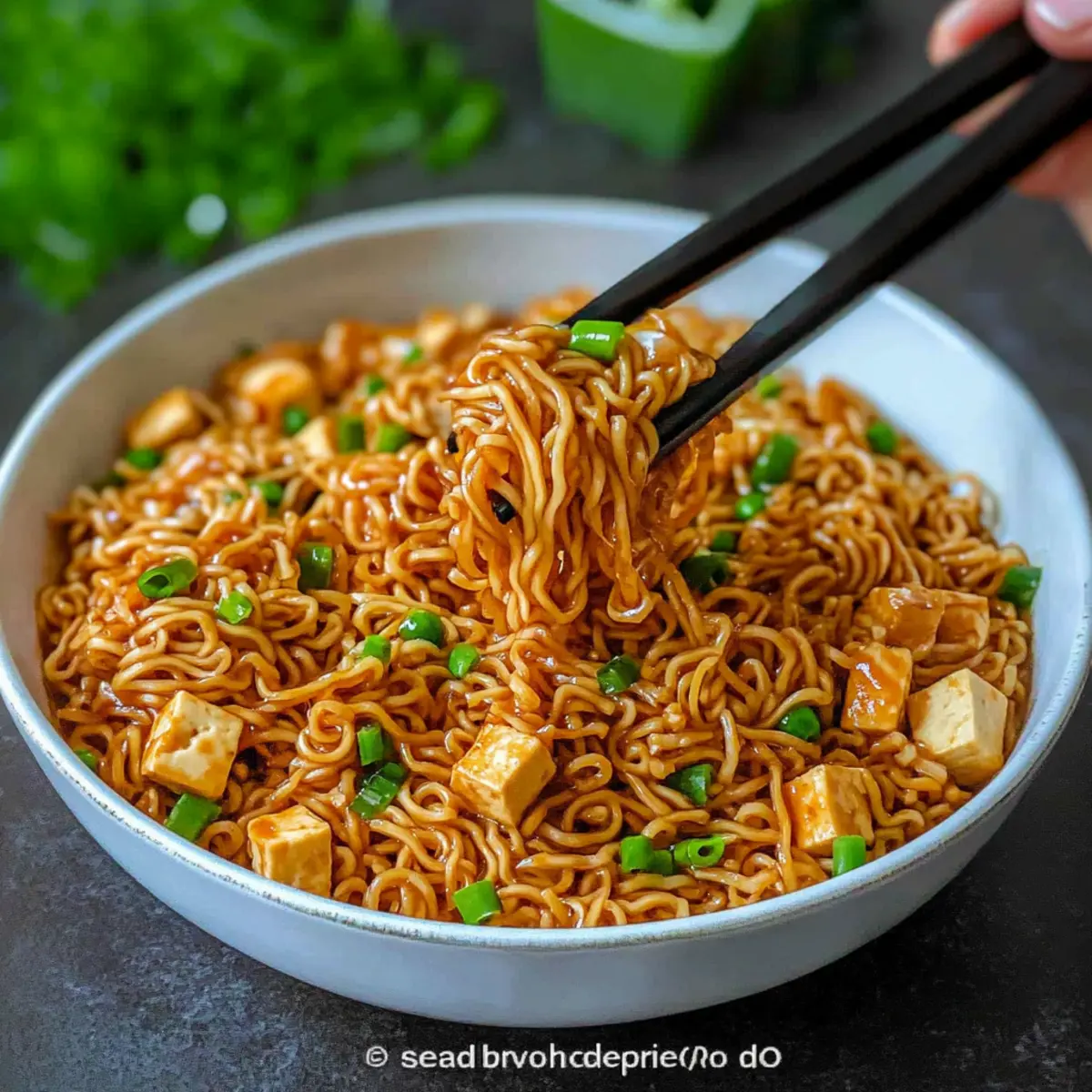 Pour the previously prepared sauce into the sautéed tofu and vegetables. Increase the heat to medium-high and let it simmer for 2–3 minutes, stirring frequently to ensure the sauce thickens and evenly coats the ingredients. You’ll know it’s ready when the sauce is glossy and clings satisfyingly to the tofu and veggies, enhancing the flavor of your Easy Saucy Ramen Noodles.
