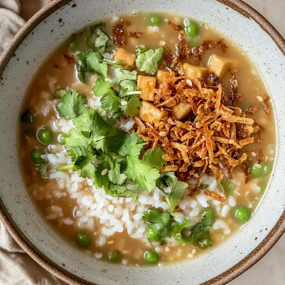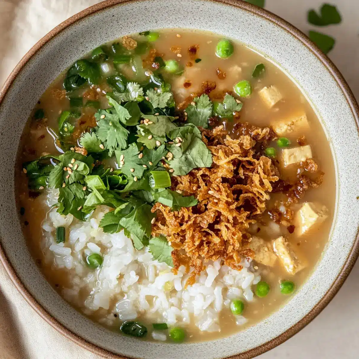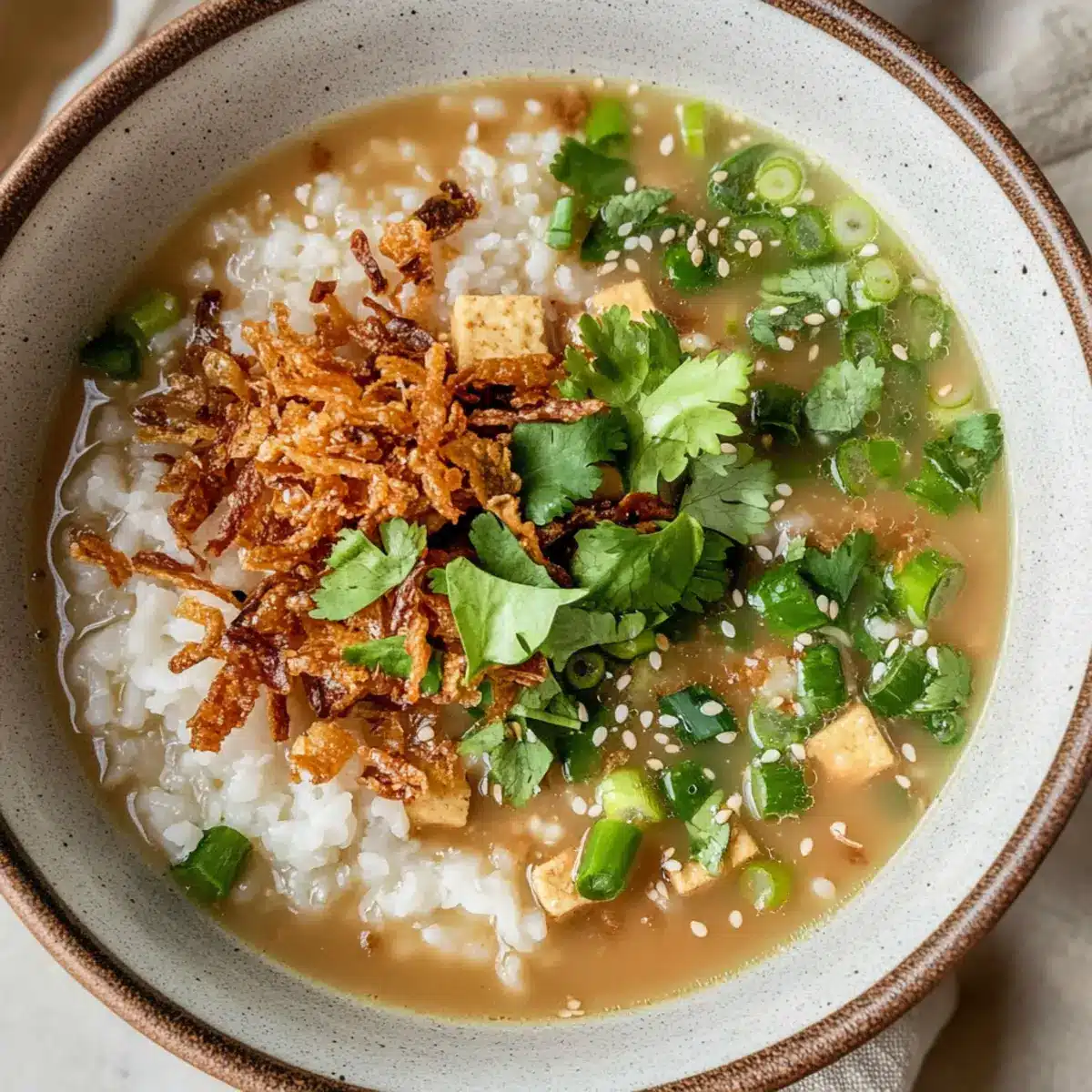 - Serve by adding rice to bowls, ladling broth around it, and topping with crispy tofu. Garnish with spring onions or sesame seeds.