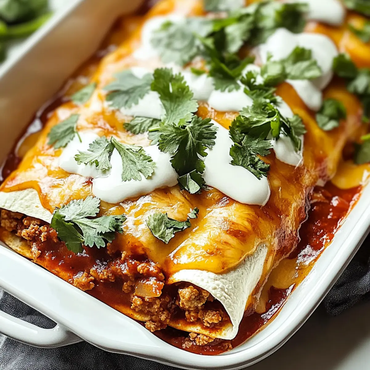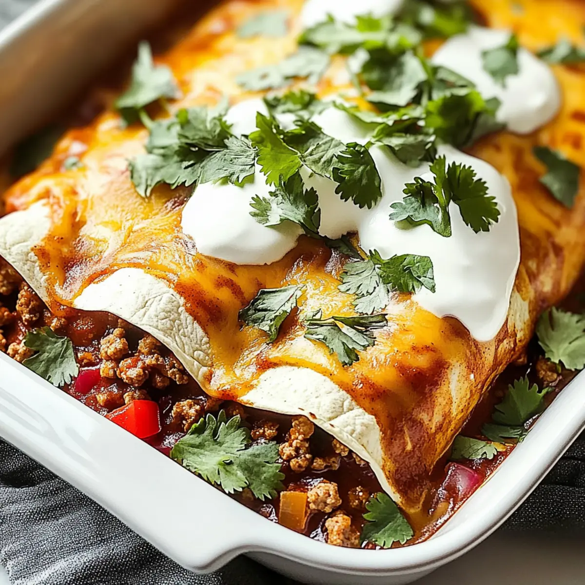 Comforting and deeply satisfying, these Ground Beef Enchiladas are perfect for those chilly evenings when warmth is needed. Quick to make, they come together in no time, making them ideal for busy schedules without sacrificing flavor. Customizable for various tastes, you can easily swap ground beef for chicken, turkey, or lentils, ensuring everyone is catered for. Mouthwatering layers of gooey cheese and zesty sauce create an irresistible dish that pleases the whole family. Perfect for gatherings, these enchiladas invite joyful conversations and laughter around the table, creating unforgettable dining experiences. Don’t miss out on serving them alongside fresh sides like a crisp salad or classic Mexican rice.