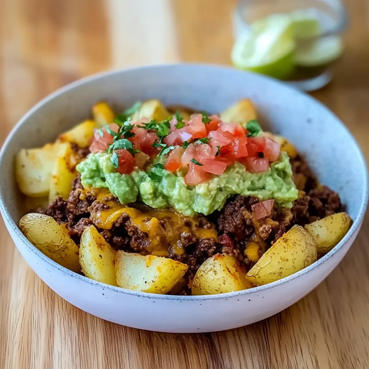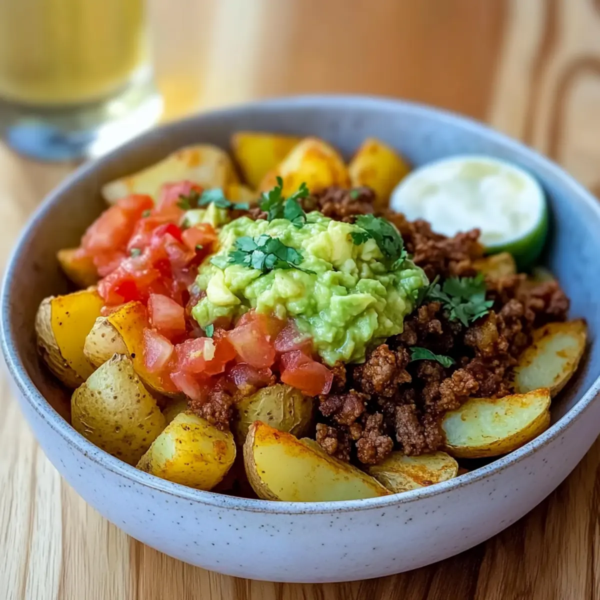 Reheating: For best results, reheat the beef in a skillet over medium heat until warmed through. Use an air fryer or toaster oven to re-crisp the potatoes, ensuring that your Loaded Potato Taco Bowl retains its delightful crunch!