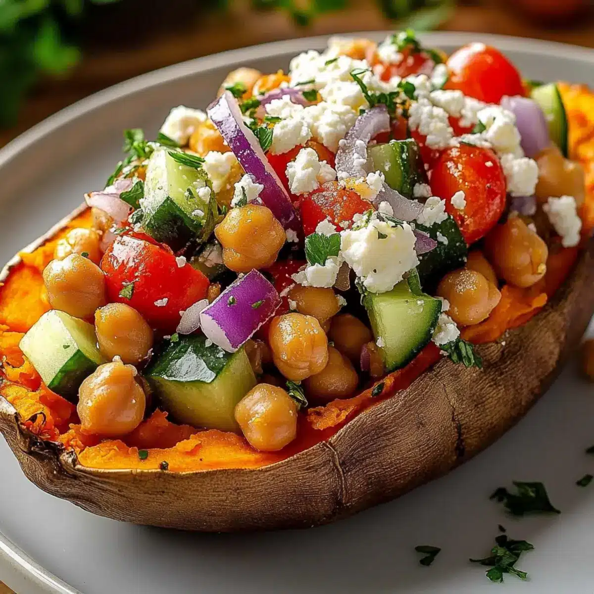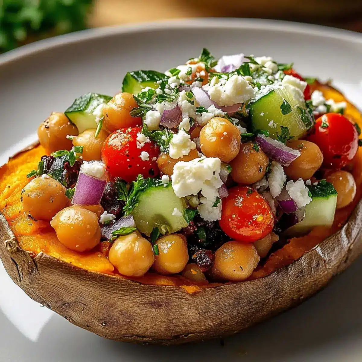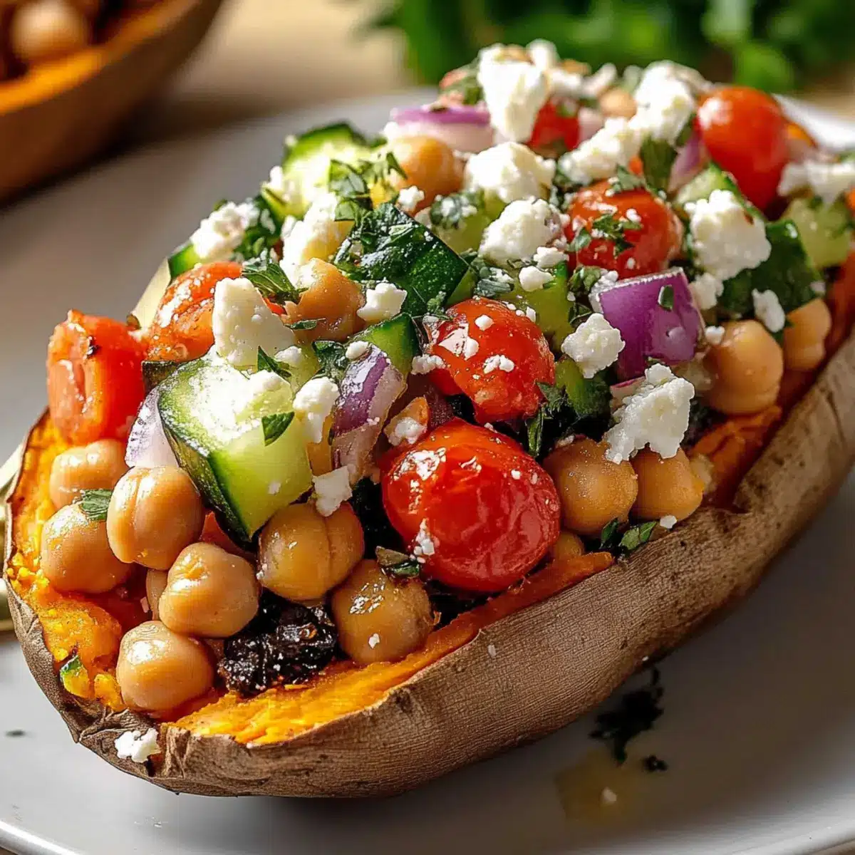 Make-Ahead Tip: Prepare the filling a day in advance, allowing the flavors to meld beautifully in your Mediterranean Stuffed Sweet Potatoes. Keep everything stored separately until ready to serve.
