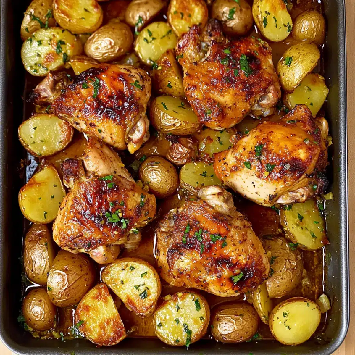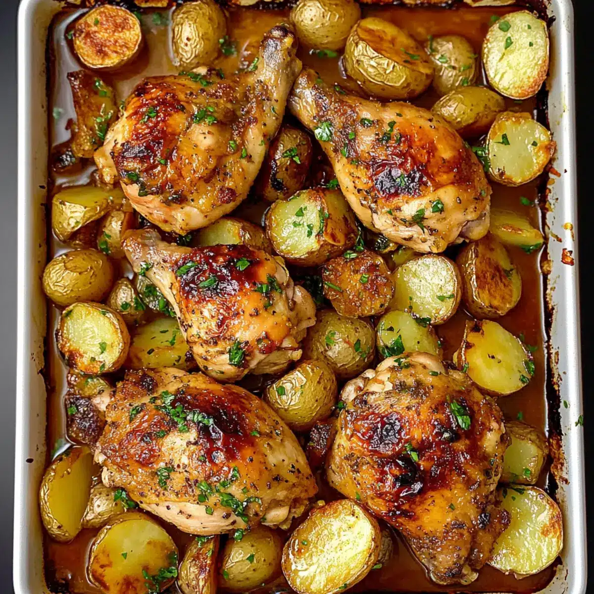 Sauce Magic: Don’t skimp on the sauce! Make sure every piece of chicken and potato is well-coated with the lemon garlic sauce for optimal flavor in your one pan chicken and potatoes.