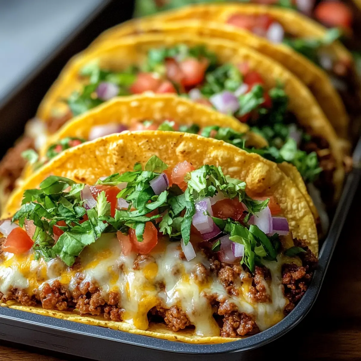 As I stood by the kitchen counter, the intoxicating scent of sizzling ground beef mingling with melted cheese filled the air, catapulting me back to my childhood taco nights. Meet my Oven-Baked Cheesy Tacos, where crispy taco shells meet a savory, loaded filling that’s a true crowd-pleaser. This recipe is perfect for those busy weeknights when you crave an easy, comforting meal that everyone will love. In just 30 minutes, you can whip up these quick tacos, customizing them with your favorite fresh toppings for a delightful twist that elevates traditional tacos. Plus, they’re gluten-free, so everyone can join in on the deliciousness! Ready to learn how to make a dish that’ll have your family begging for seconds? Let’s dive in!