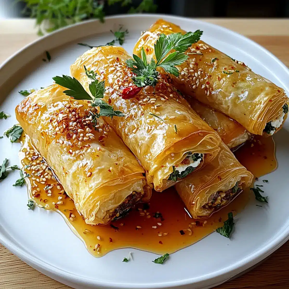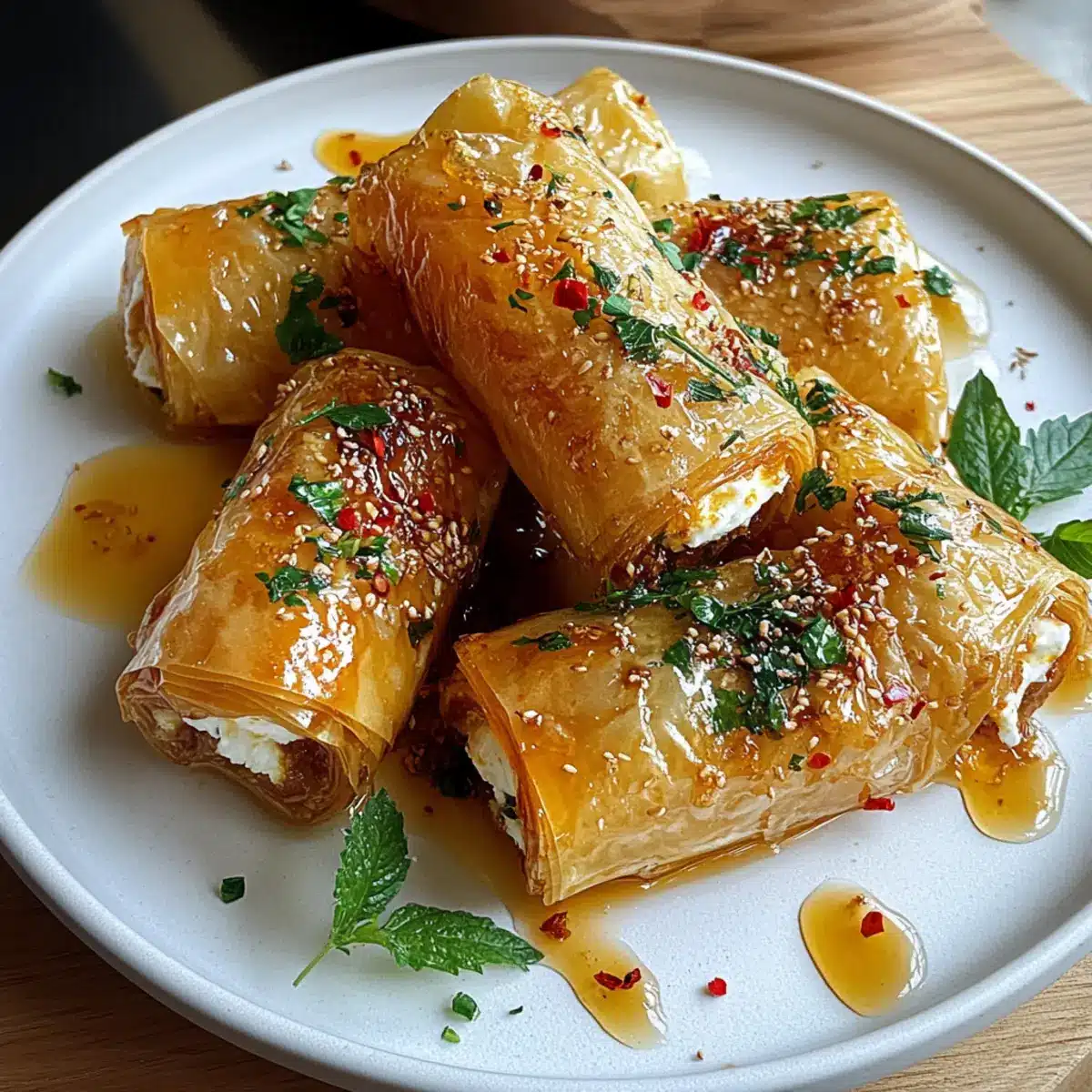 Oven Fried Feta Rolls with Sweet Chili Honey Delight