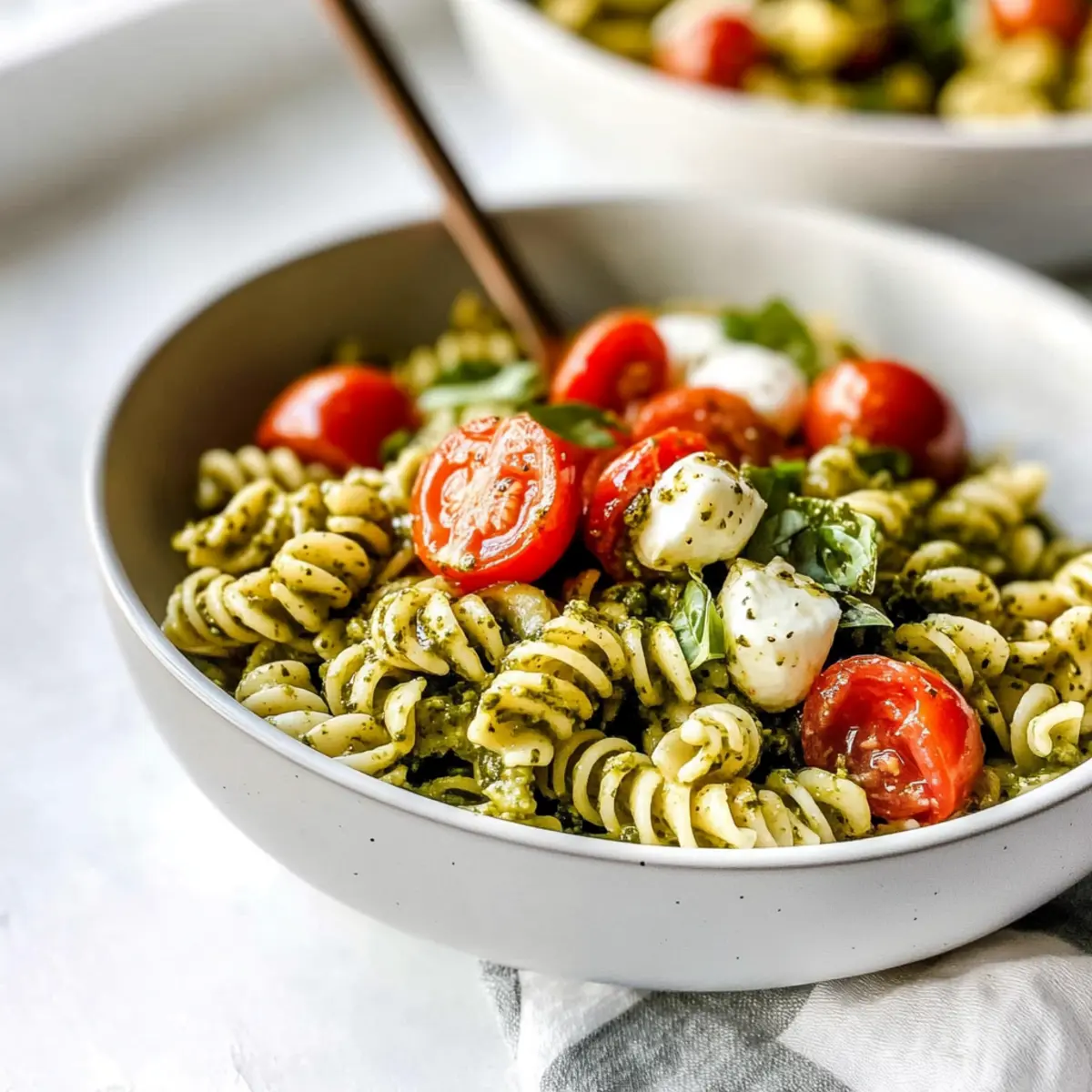 As summer whispers its sweet arrival, I find myself craving dishes that celebrate the season’s bounty—like this Quick and Easy Pesto Pasta Salad. Packed with vibrant cherry tomatoes, creamy mozzarella, and a lush, homemade basil pesto, this dish comes together in a flash, making it perfect for those busy weeknights or spontaneous gatherings. The beauty of this recipe lies not only in its effortless preparation but also in its versatility; whether you’re looking for a light lunch, a zesty side for a barbecue, or a colorful potluck option, this salad checks all the boxes. And with the ability to adapt ingredients based on your pantry or dietary needs, you can make it truly your own. Ready to dive into a plate of garden-fresh goodness?
