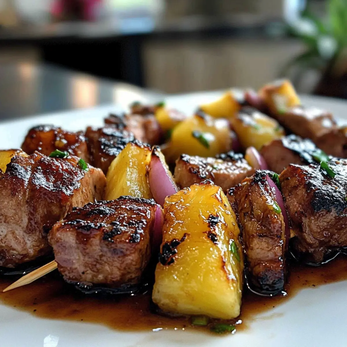 Once grilled to perfection, remove the skewers from the grill and let them rest for about a minute. This allows the juices to redistribute, ensuring tender bites in every skewer. Serve your Pineapple BBQ Pork Skewers warm, and watch as they steal the spotlight at your next gathering!