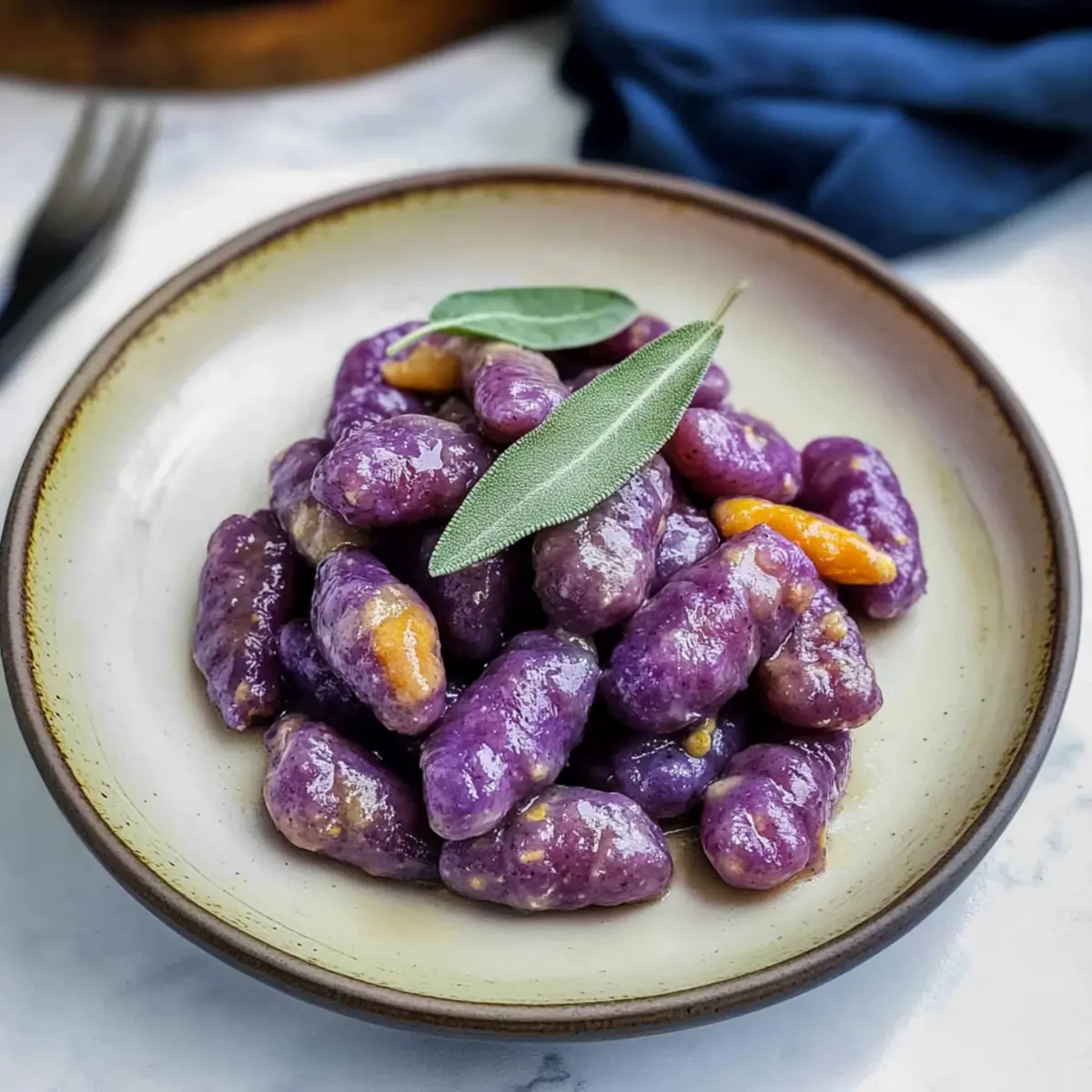 Vibrant Color: This Purple Sweet Potato Gnocchi stuns with its striking hue, making any plate pop with personality.