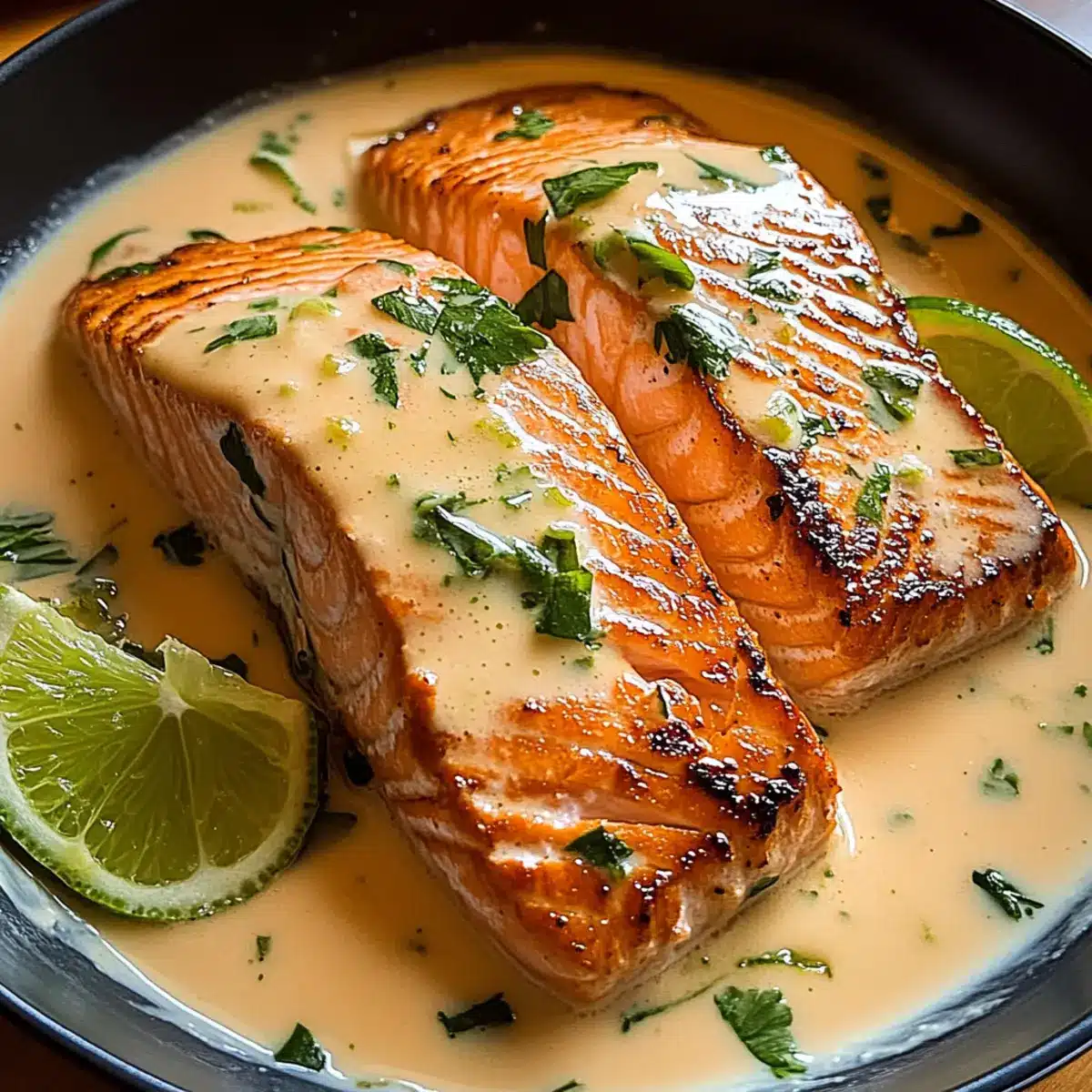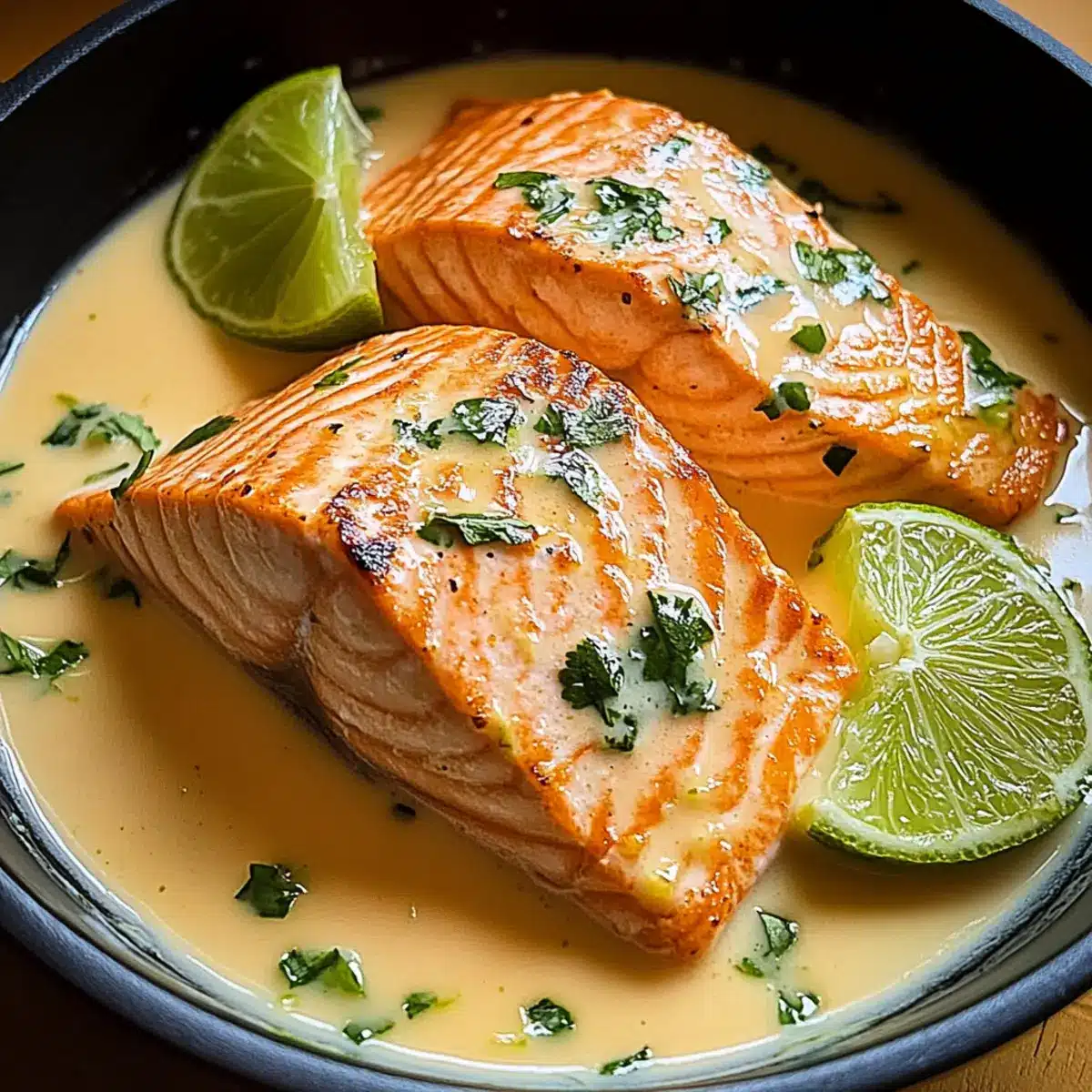 Garnish for Impact: Finish the dish with fresh lime zest or a sprinkle of chopped fresh herbs like cilantro for a burst of color and flavor, enhancing your Salmon in Coconut Lime Sauce.