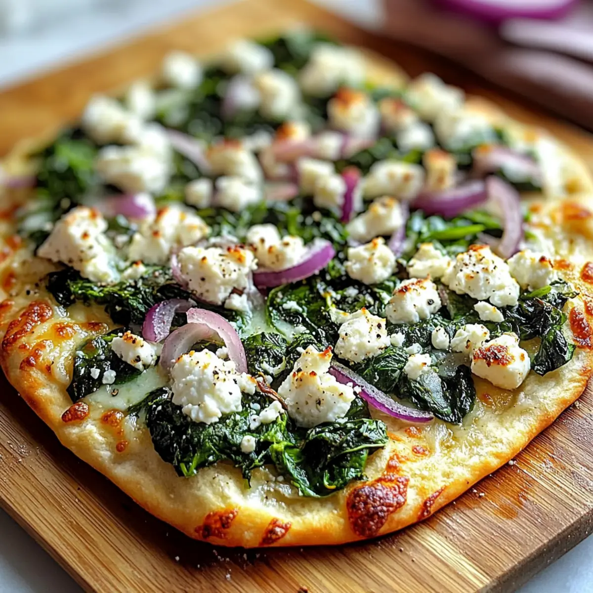 Spinach Feta Flatbread Pizza That's Quick and Delicious