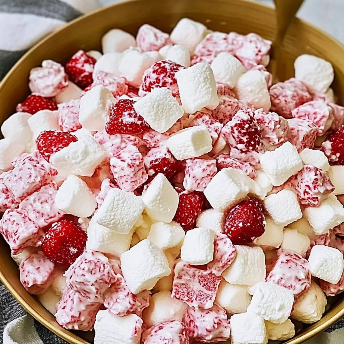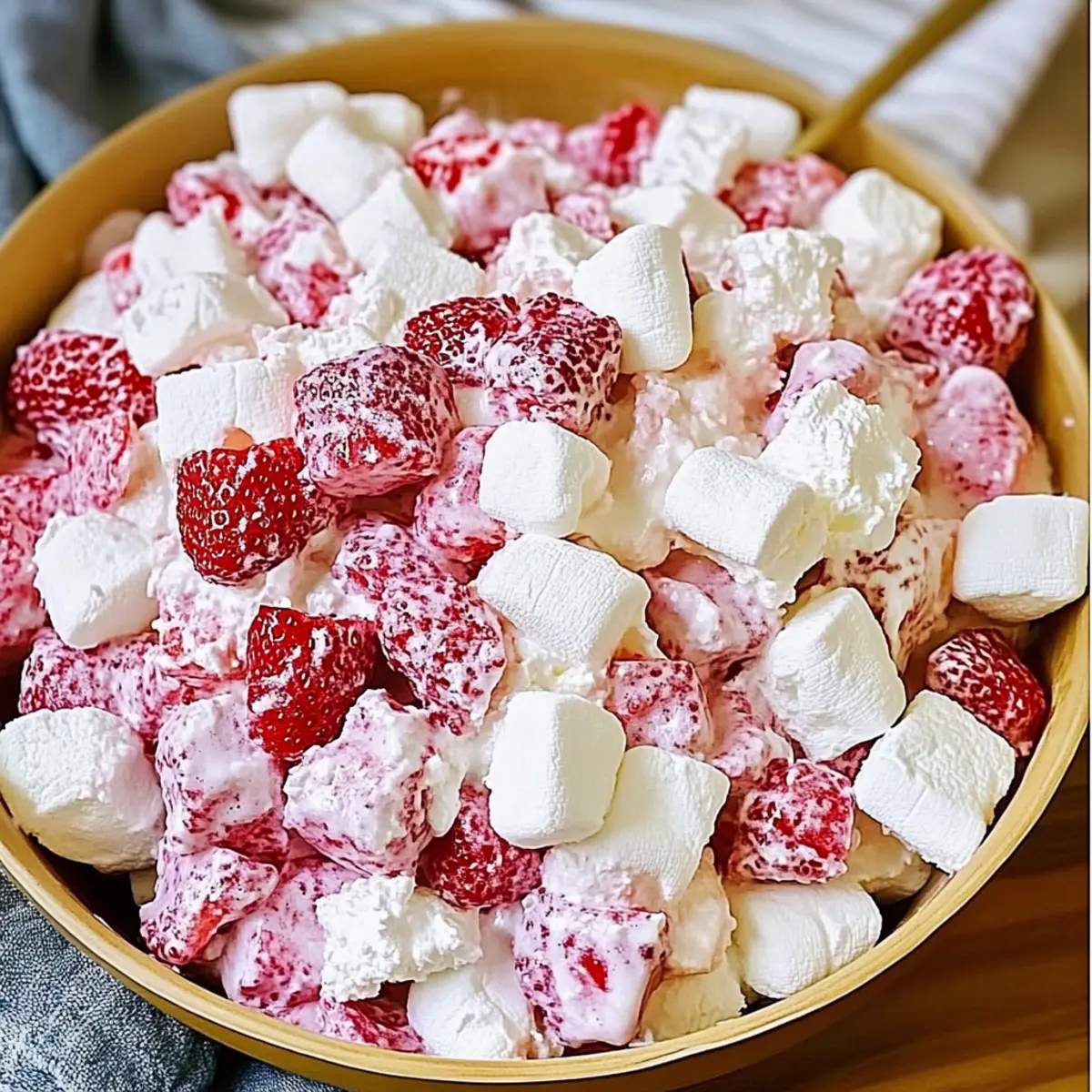 - Gentle Folding: Always fold the ingredients gently; avoid aggressive stirring to keep the fluffy texture of your Strawberry Shortcake Fluff Salad intact.