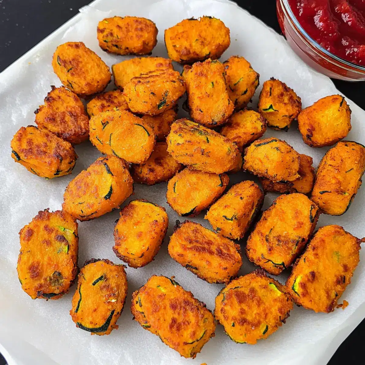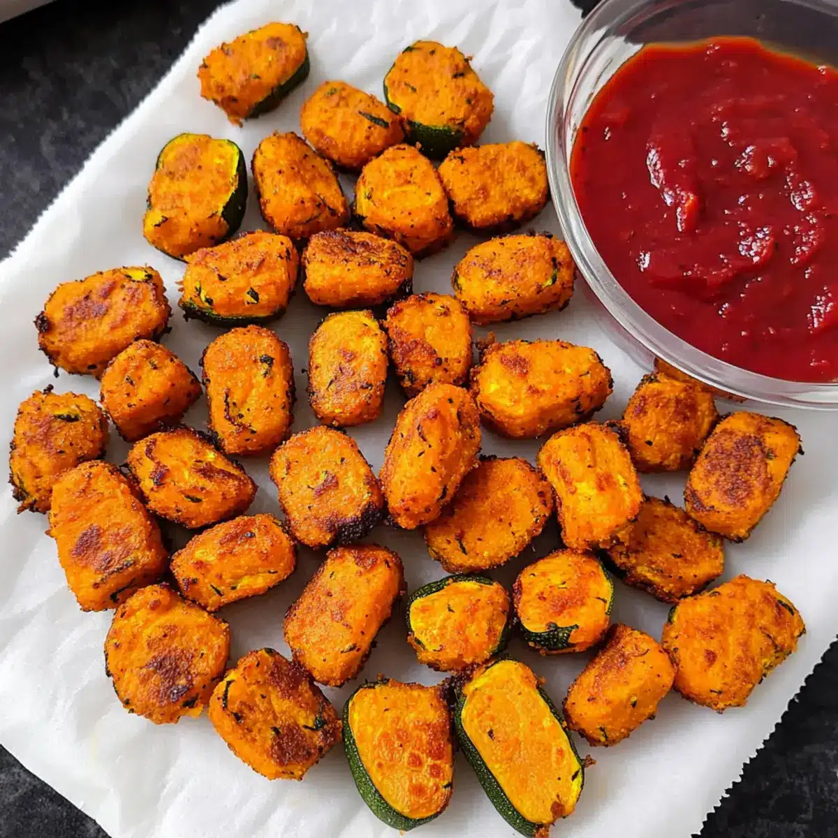 - Crispy Finish: For an extra crispy outer layer, air fry the sweet potato zucchini tots instead, adjusting bake times as needed.