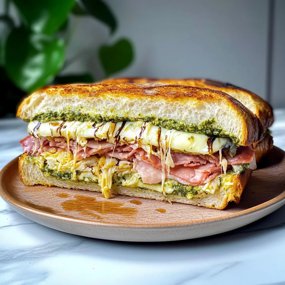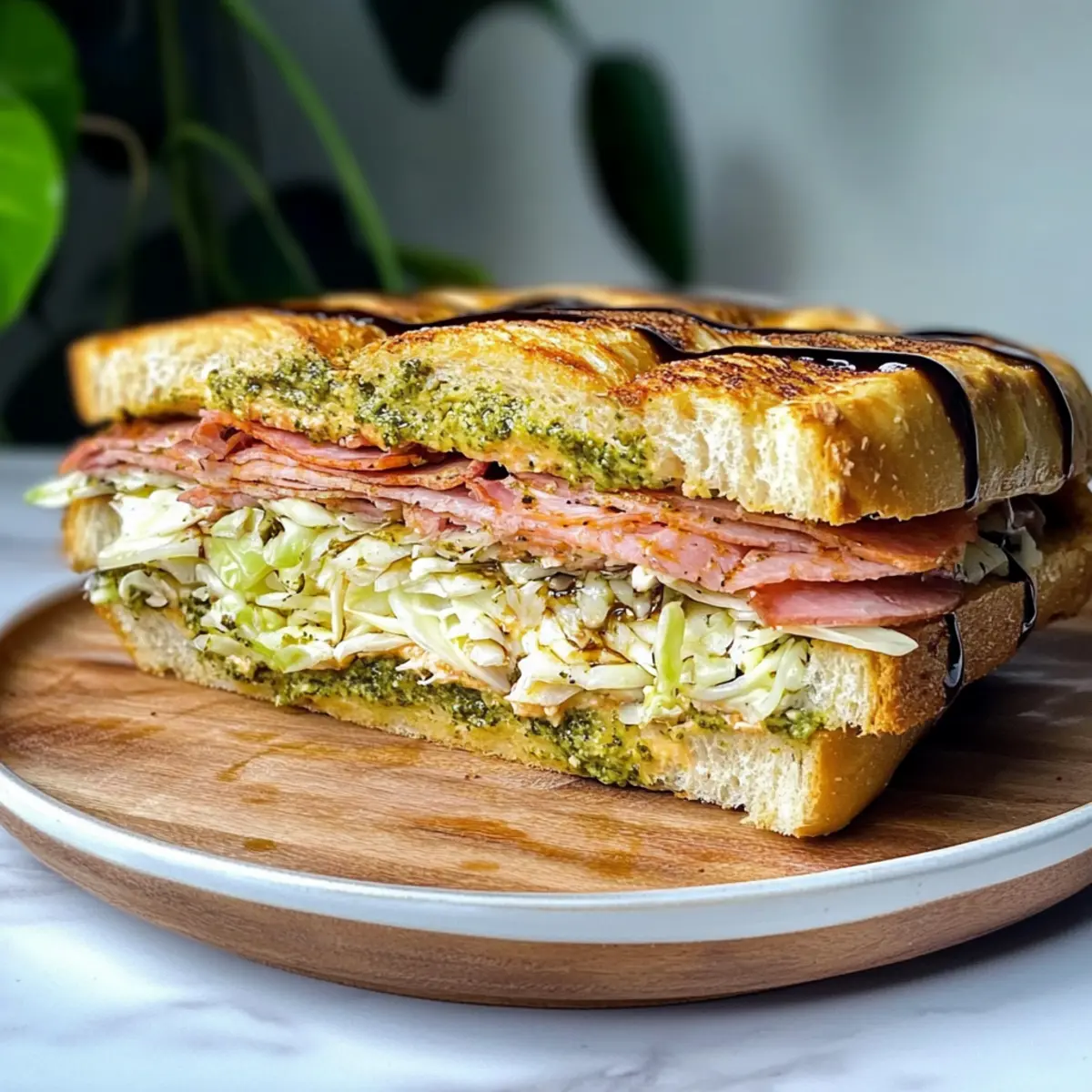 Balsamic Reduction: Drizzle a homemade balsamic reduction instead of glaze for a deep, rich flavor that enhances each layer of the sandwich.
